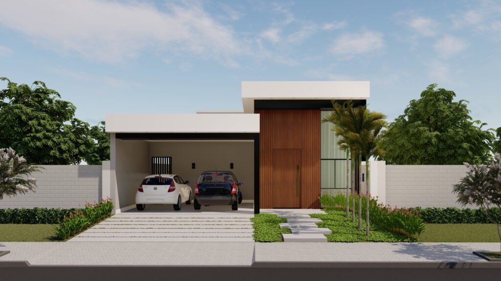 Um projeto contemporâneo que une design e otimização de espaços. Ideal para terrenos de 10×20, esta residência prioriza a funcionalidade sem abrir mão da sofisticação e do conforto para a família.